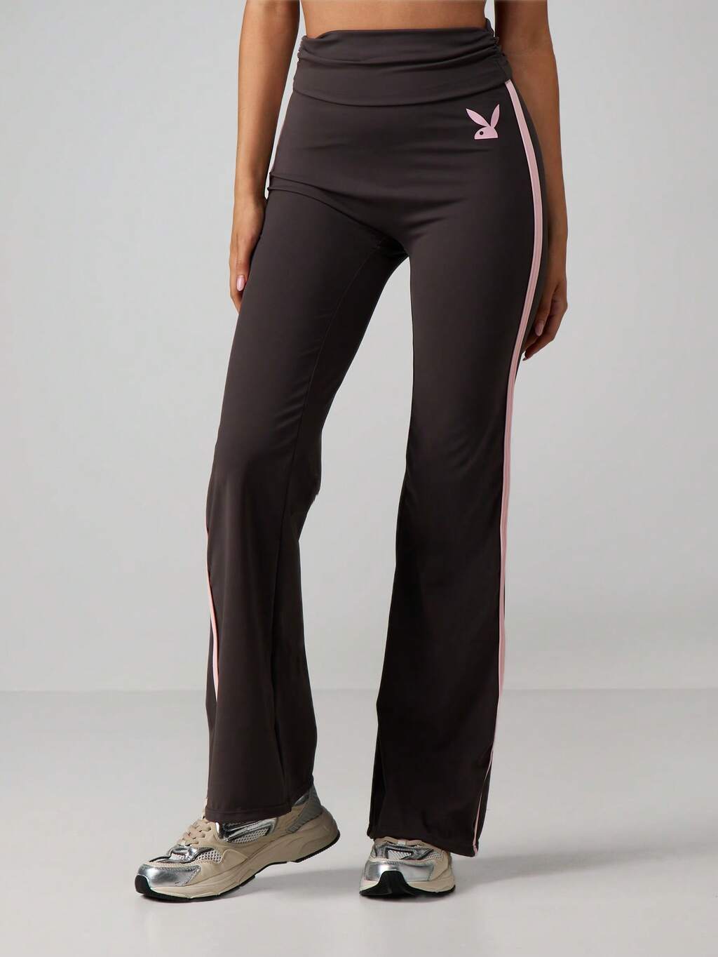Missguided x Playboy High Waist Fold Over Flared Yoga Pants With Side Stripe Athletic Loungewear For Women