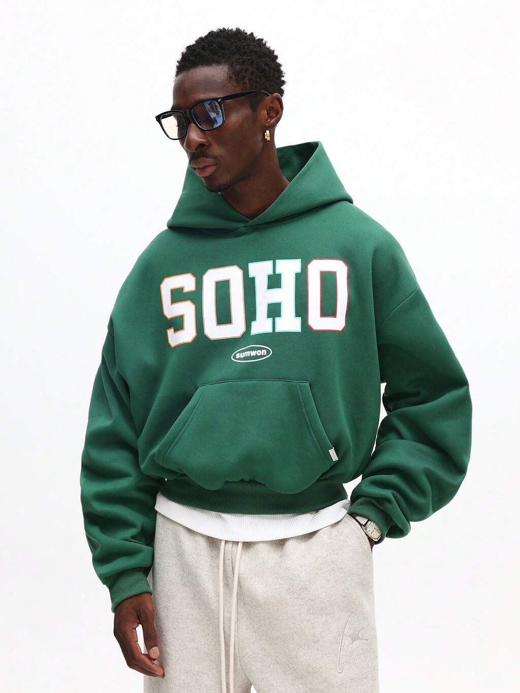 SUMWON Oversized Drop Shoulder Pullover Hoodie With Large Number Print Casual Streetwear Warm Winter Loungewear Centre Pocket Urban Fashion
