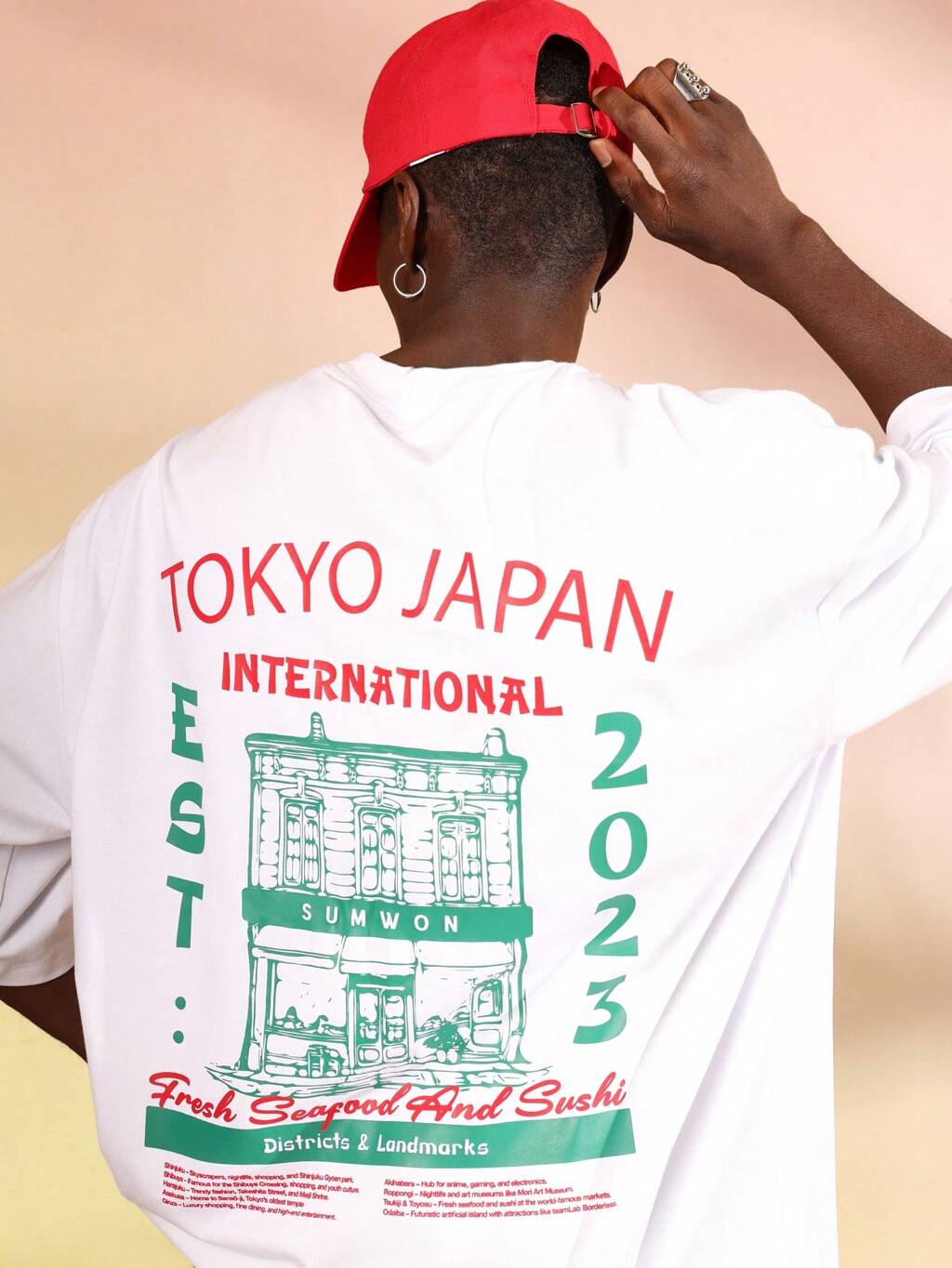 SUMWON Japanese Streetwear Districts Landmarks Graphic T-Shirt International Fresh Seafood Sushi Print Short Sleeve Casual Urban Summer Holiday Travel Festival Top