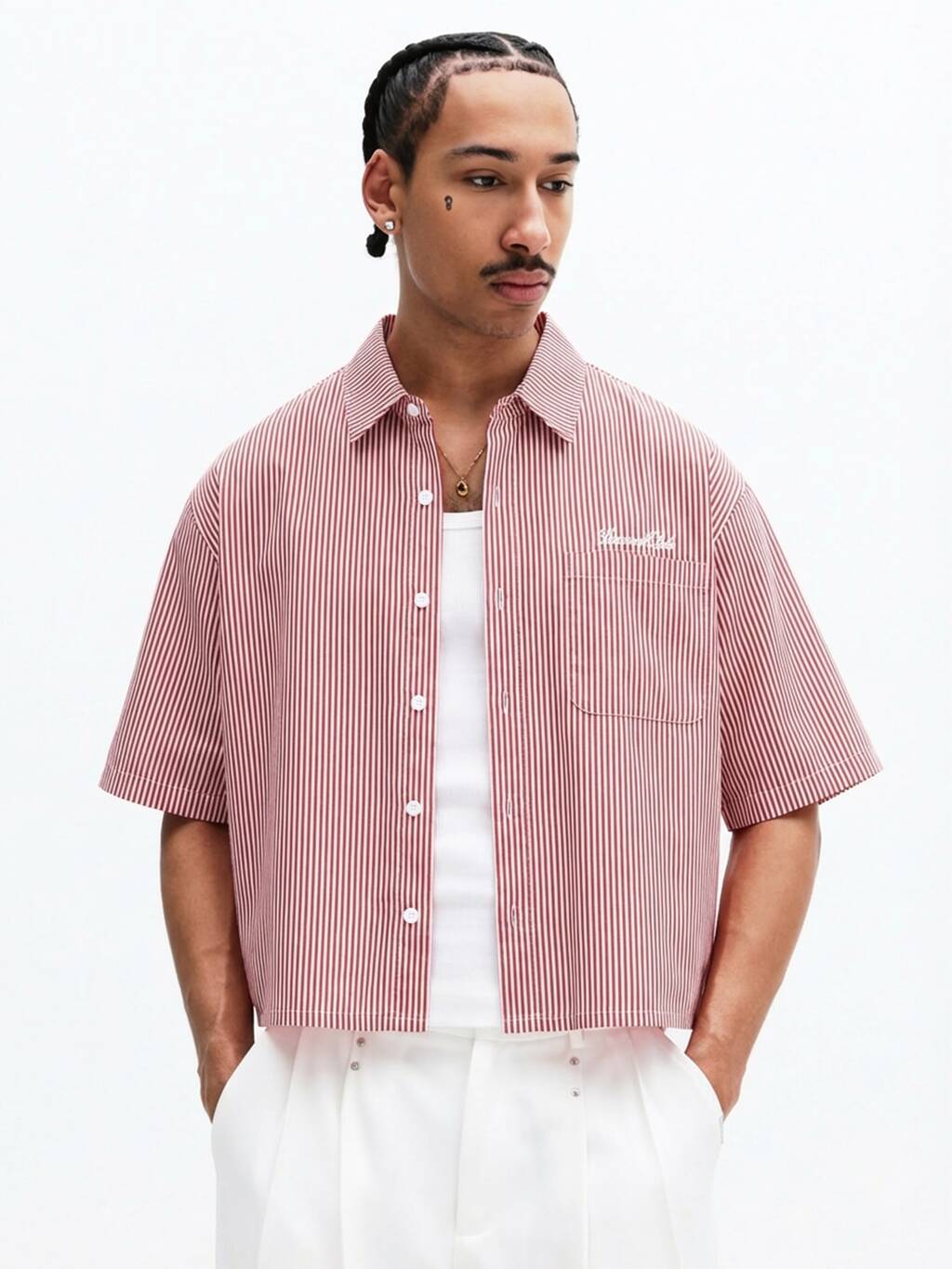 SUMWON Cropped Striped Button-Down Shirt Short Sleeves