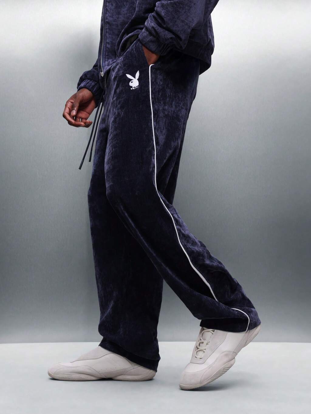 PLAYBOY X SUMWON Velour Straight Leg Sweatpants With White Piping Detail And Logo Embroidery For Casual Loungewear Winter Comfort