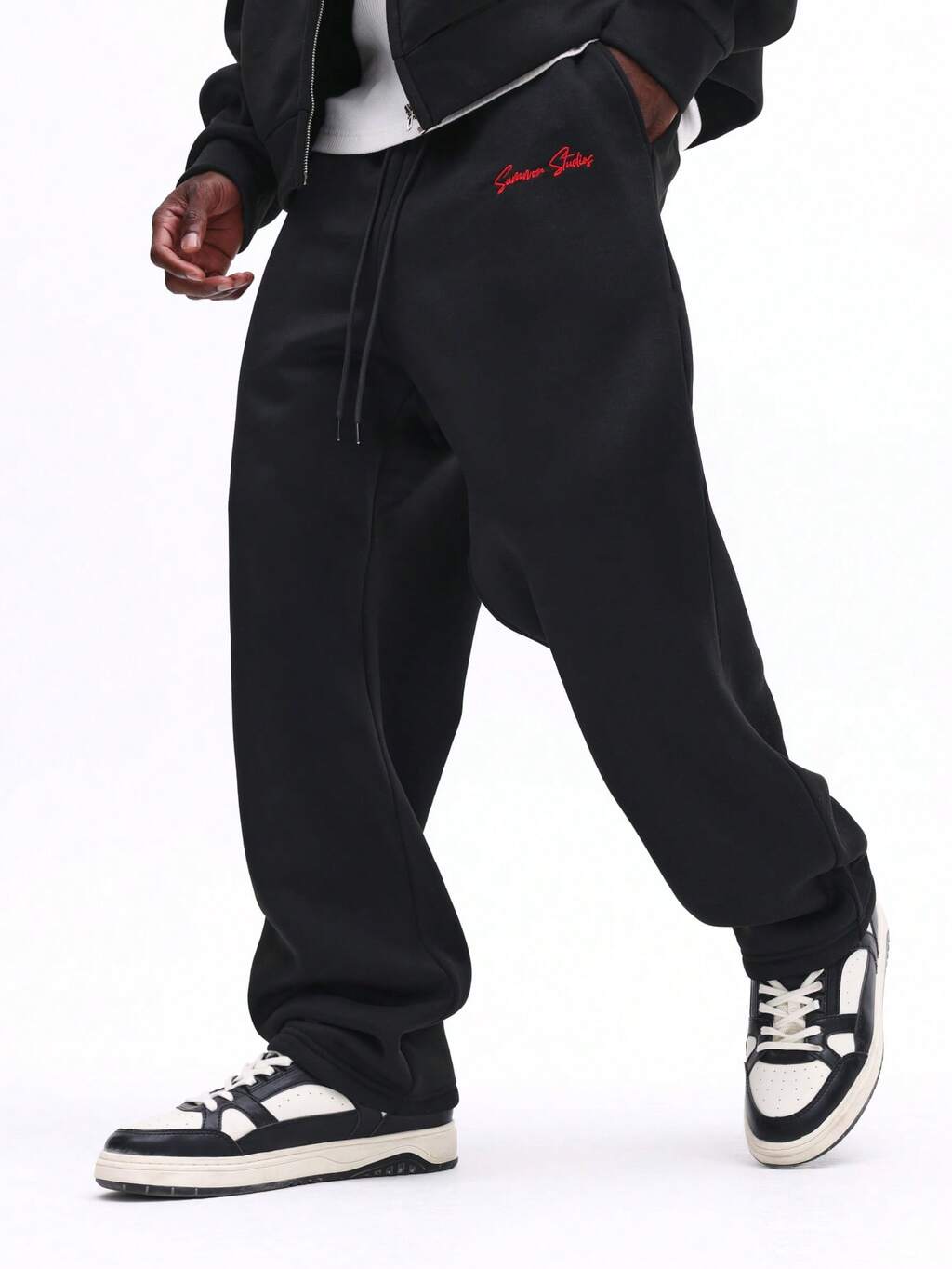 SUMWON Relaxed Fit Baggy Sweatpants With Patchwork Branding Details Casual Streetwear Plain