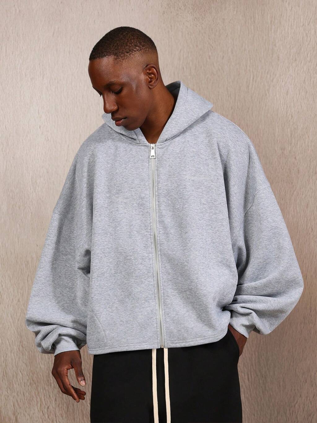 SUMWON Regular Minimalist Full Zip Hoodie With Embossed Back Detail Casual Streetwear Urban Fashion Essential Autumn Winter Layering Piece Comfortable Daily Wear Classic Design Plain