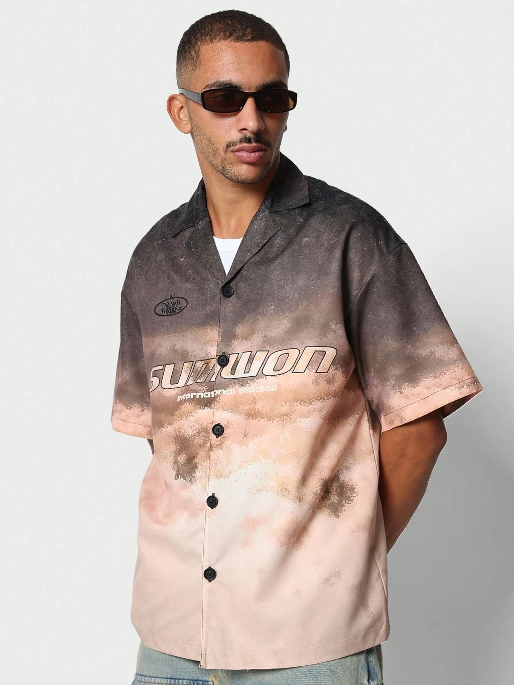 SUMWON Regular Fit Short Sleeve Sunset Printed Revere Shirt