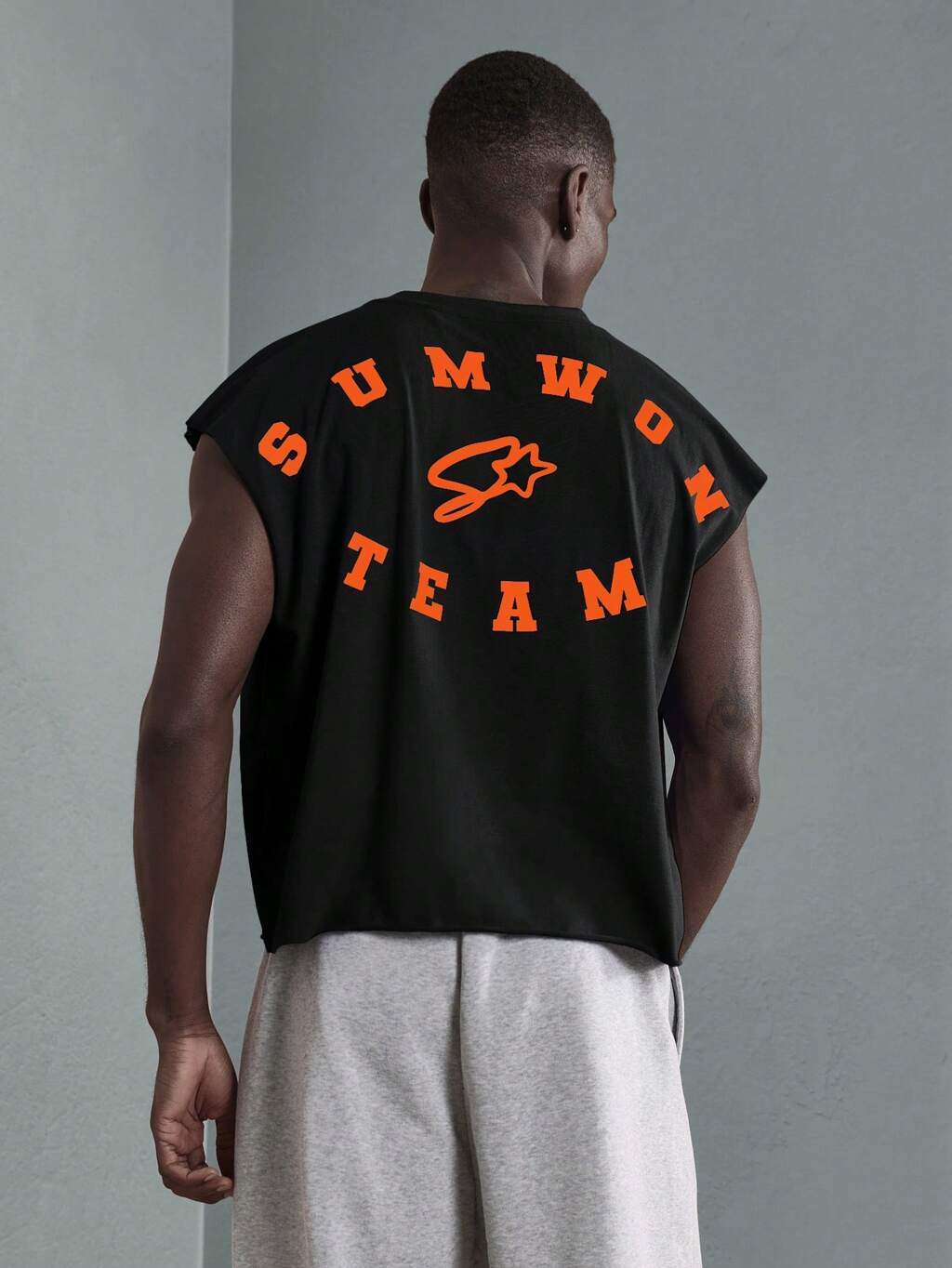 SUMWON Sleeveless Athletic Tank Top Sumwon Team Varsity Logo Workout Gym Training Sports Performance Muscle Tank Urban Streetwear Summer Active Wear Casual
