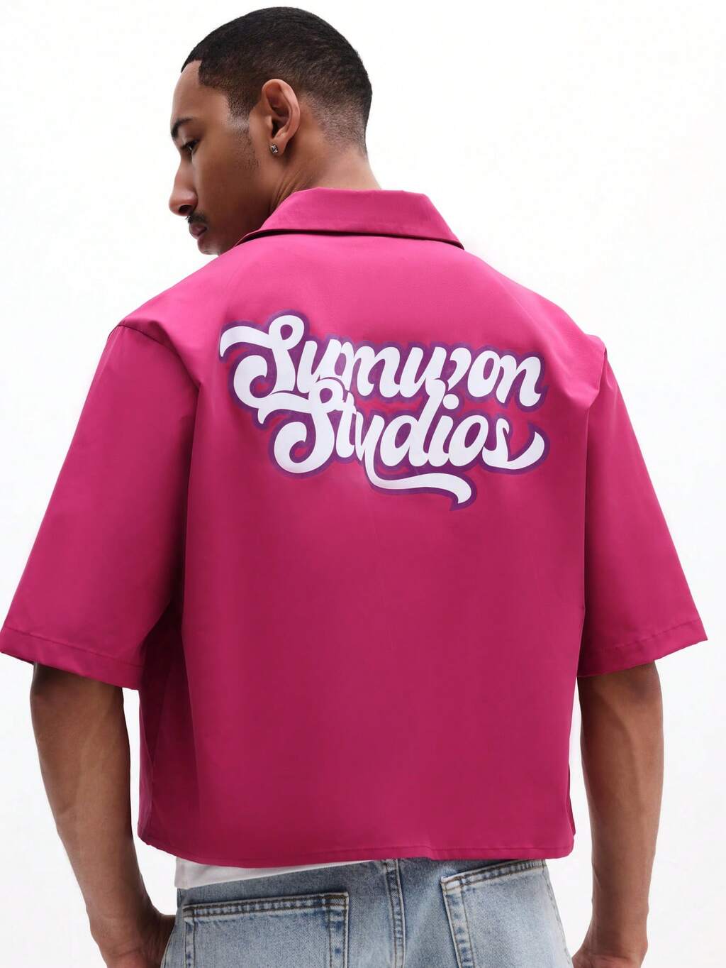 SUMWON Men's Crop Fit Short Sleeve Button Down Shirt With Back Print Collared Top Summer Casual Style