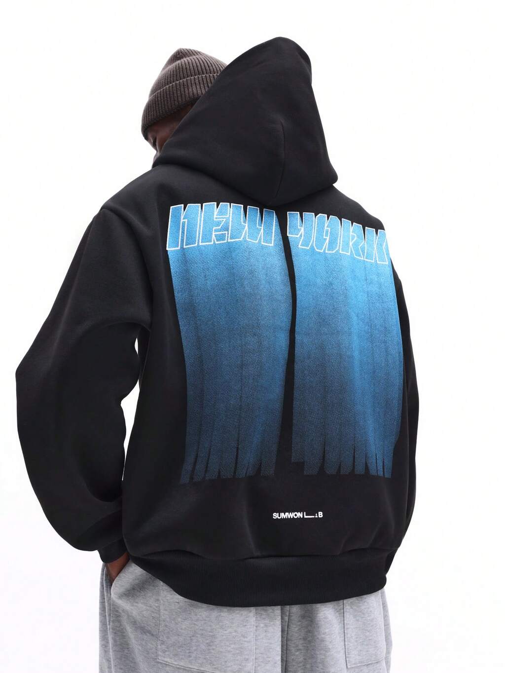 SUMWON Regular Men's Black Pullover Hoodie With Blue Gradient Back Print And Centre Pocket For Casual Winter Wear