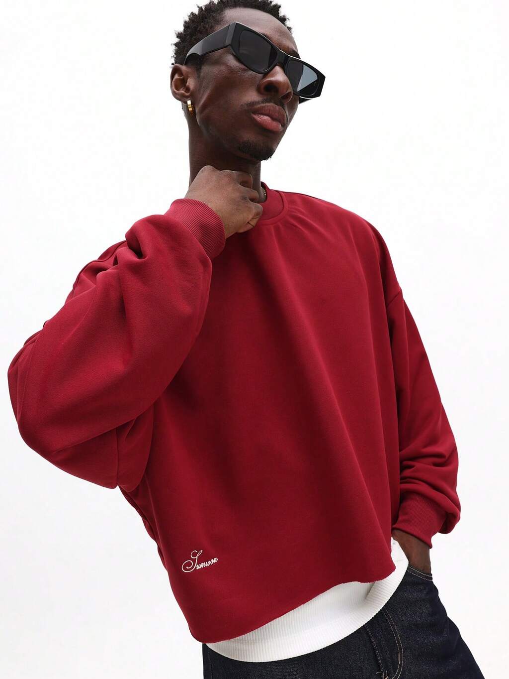 SUMWON Oversized Athletic Regular Fit Sweatshirt Crewneck French Terry Layered Sleeve Design Casual Streetwear Fall Winter Essential