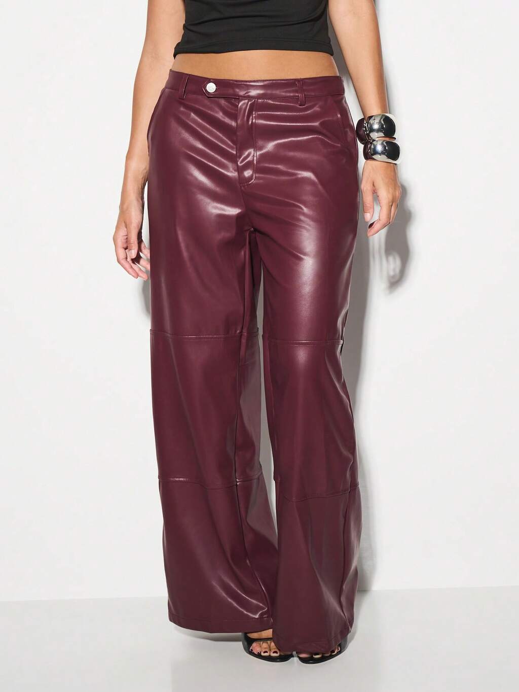 KIZN Statement Wide Leg Faux Leather Trousers Bell Bottom Retro Palazzo Style Elegant Fall Winter Classic Design With High Waist Modern Silhouette Premium Club Party