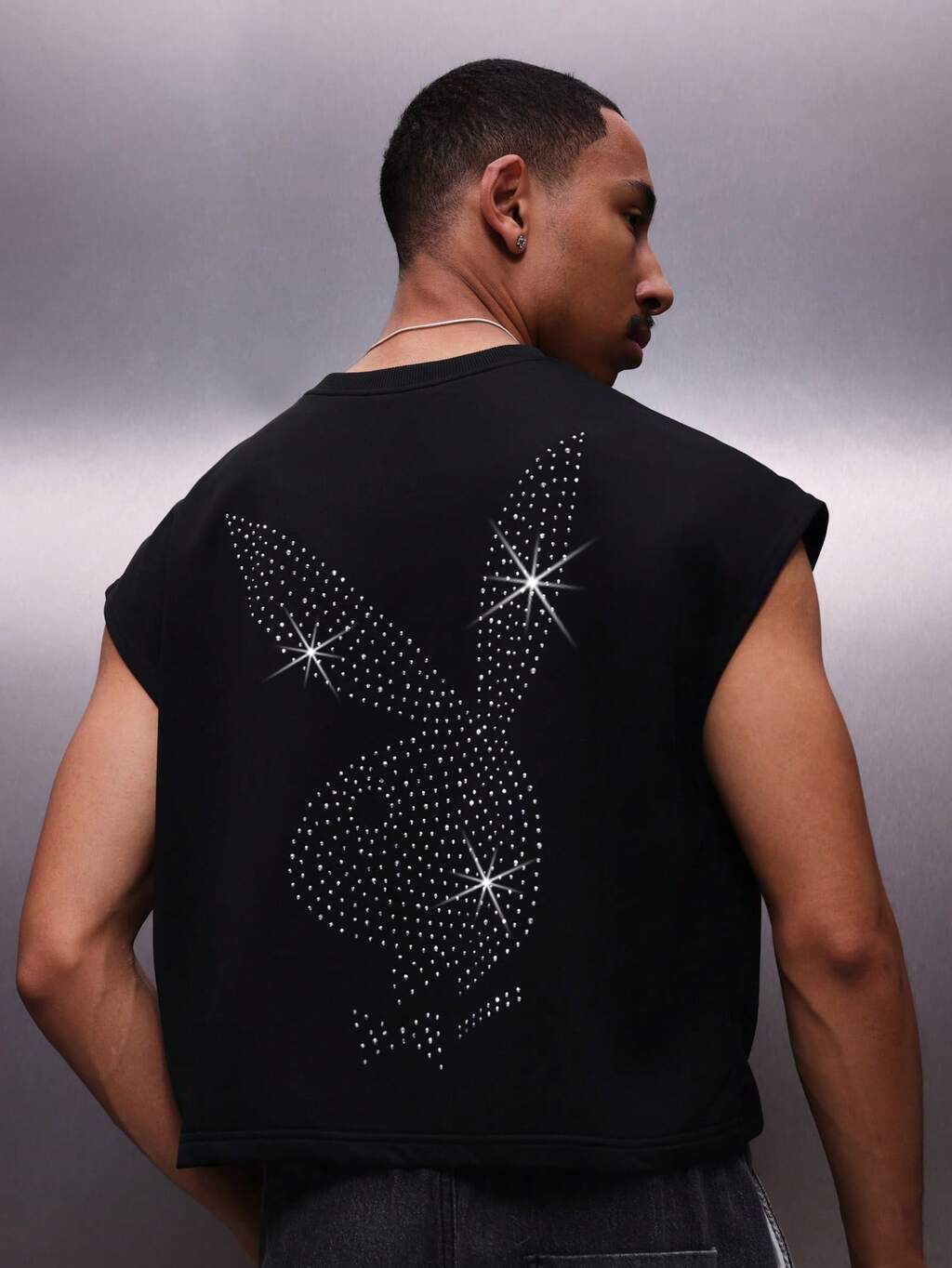 PLAYBOY X SUMWON Men's Sleeveless Tank Top With Rhinestone Back Graphic Design Casual Summer Streetwear