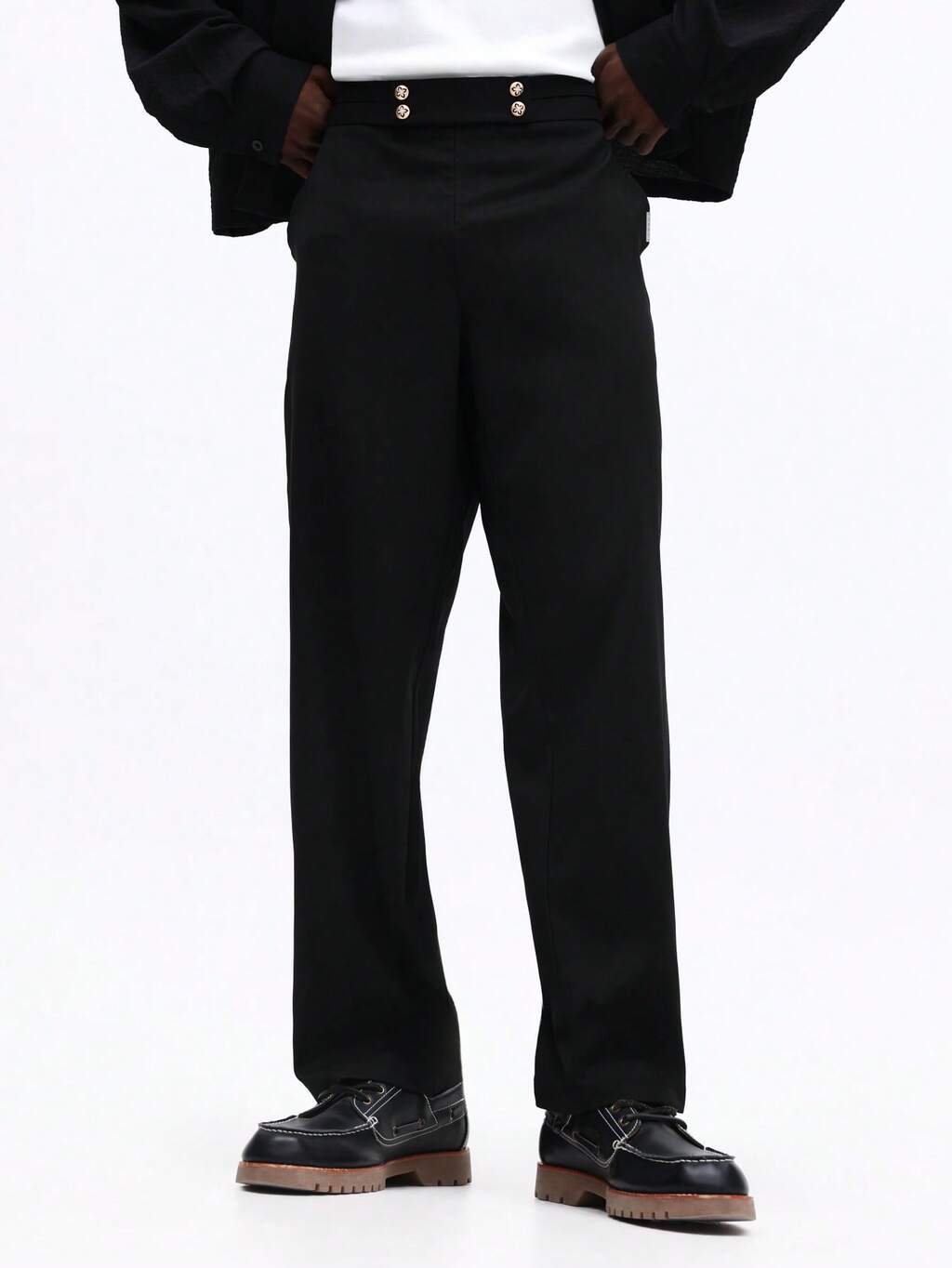 SUMWON Men's Formal Suit Pants With Button Details Wide Leg Tailored Trousers For Business Professional Office Wear Plain