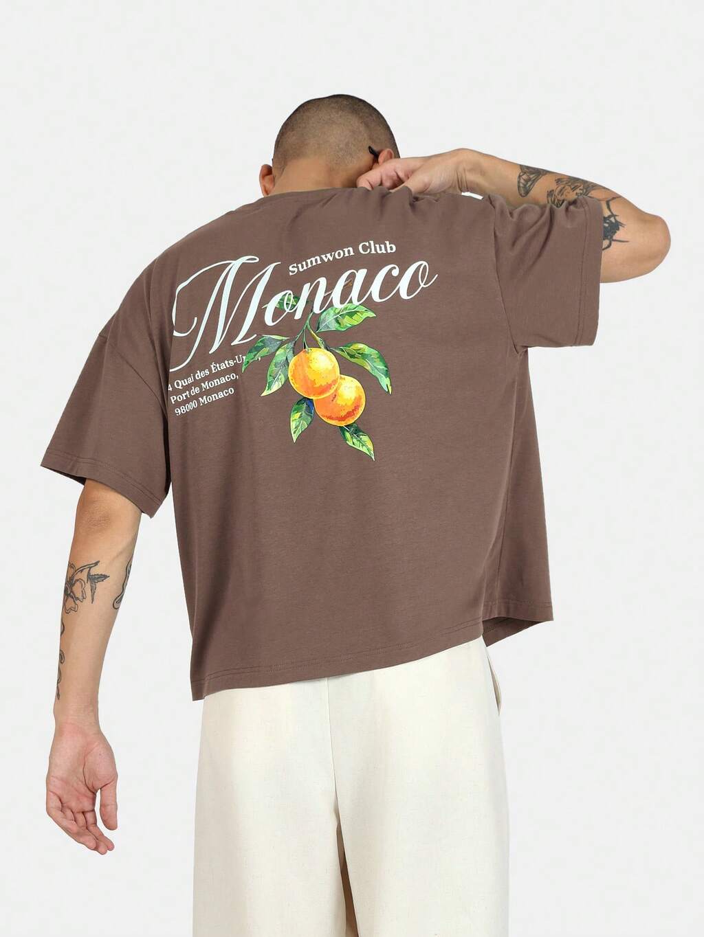 SUMWON Herren Boxy Fit Kurzarm Rundhals T-Shirt mit Monaco Wellness Club Rückendruck, lässiges Baumwoll T-Shirt für Sommer und Frühling