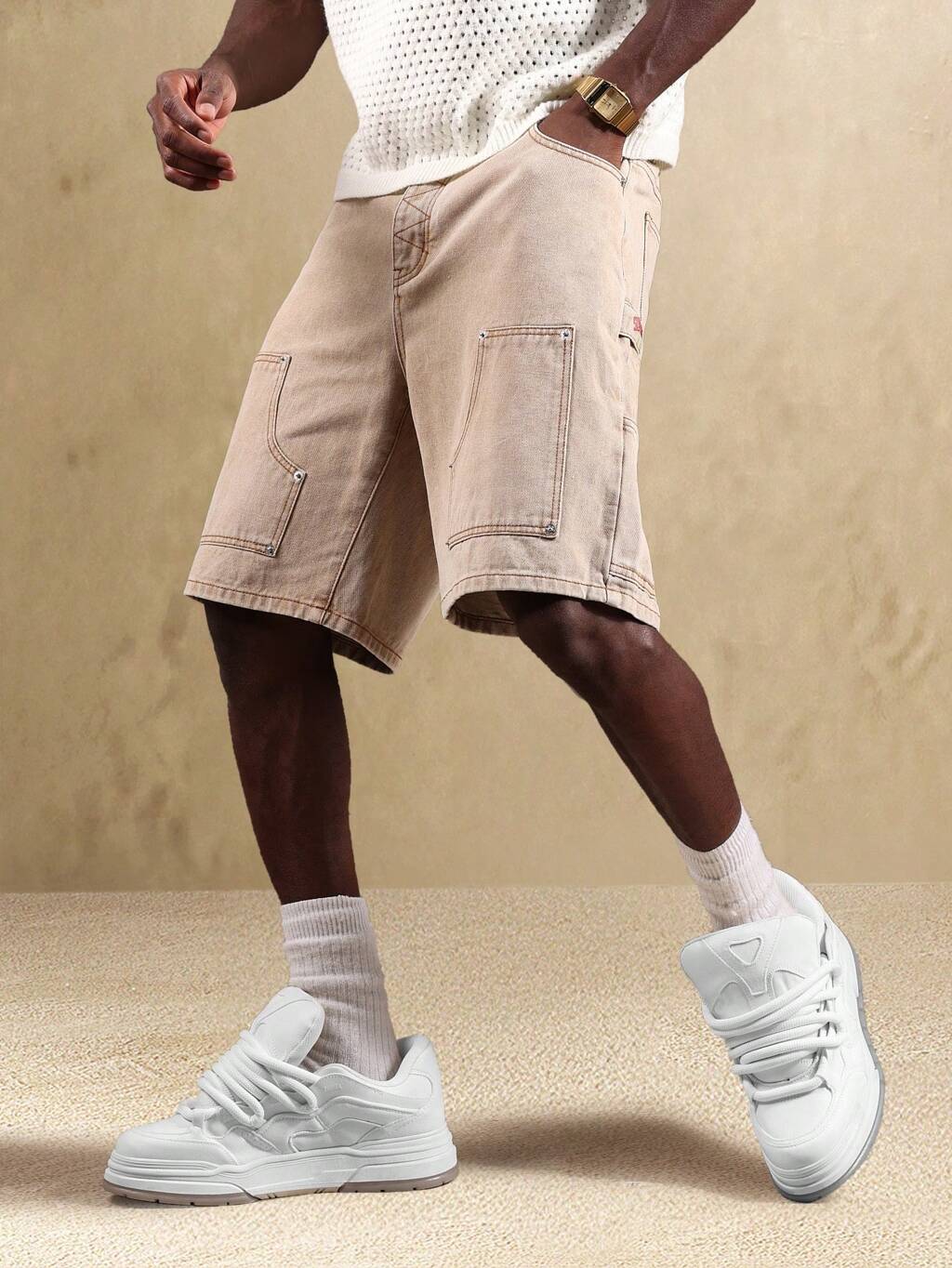 SUMWON Premium Zwei-Ton Jeans-Bermuda-Shorts in weiter Passform, Streetwear-Lässig-Sommer-Skater-Stil mit Kontrastpaneel-Design, urbane Mode, bequeme Shorts