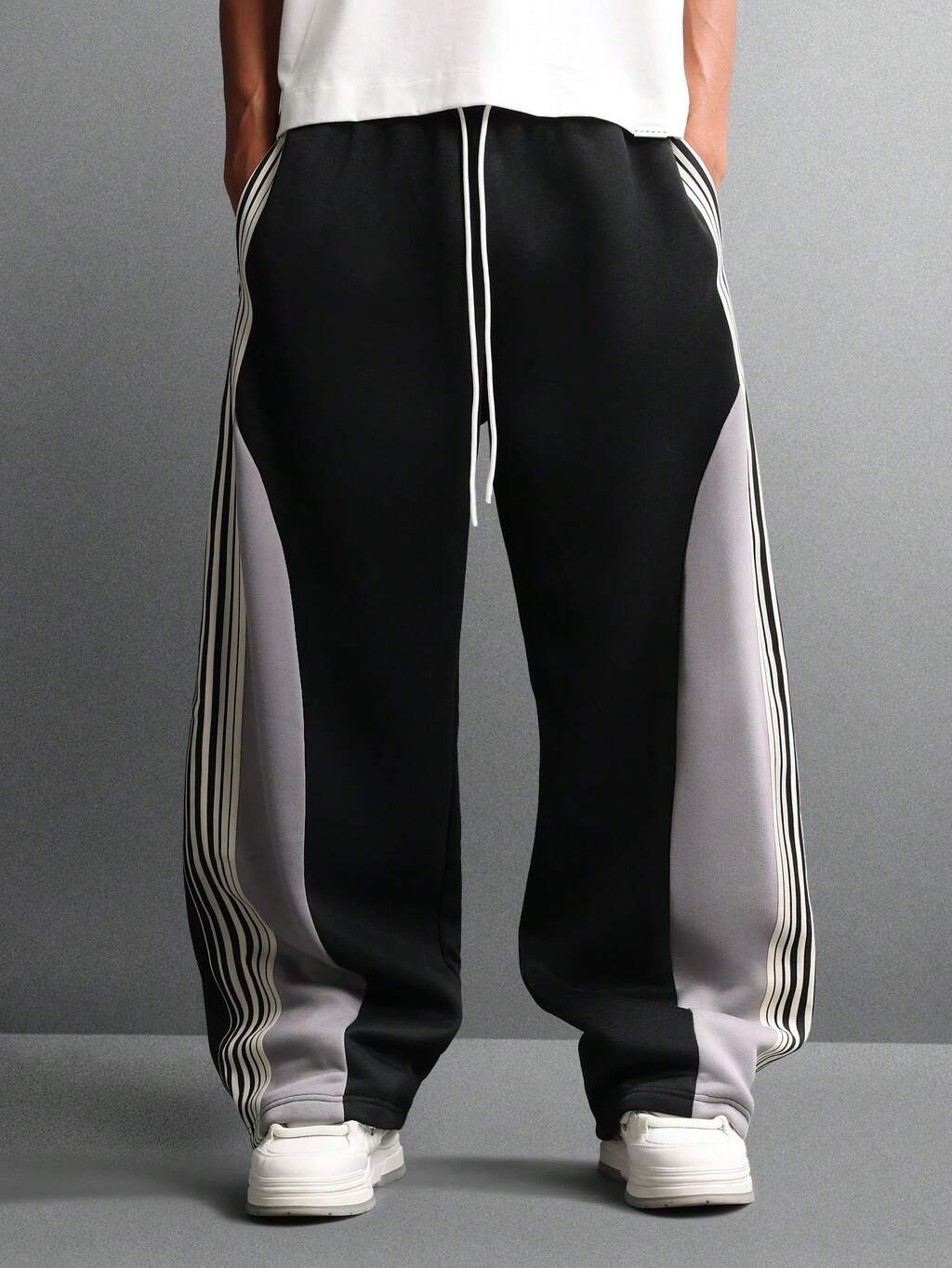 SUMWON Pantalones de corte patinador de pierna ancha con bloqueo de color, pantalones casuales de moda urbana moderna, silueta holgada y relajada, para otoño e invierno