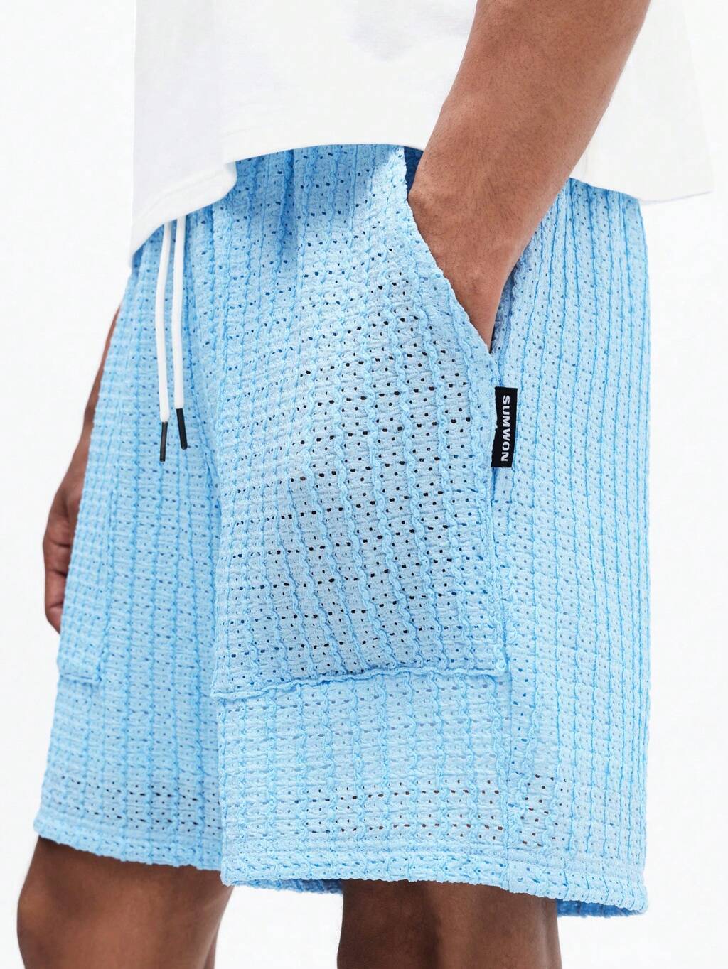 SUMWON Bañadores de hombre de color azul claro texturizado con cordón en la cintura, pantalones cortos de playa para verano, piscina y vacaciones