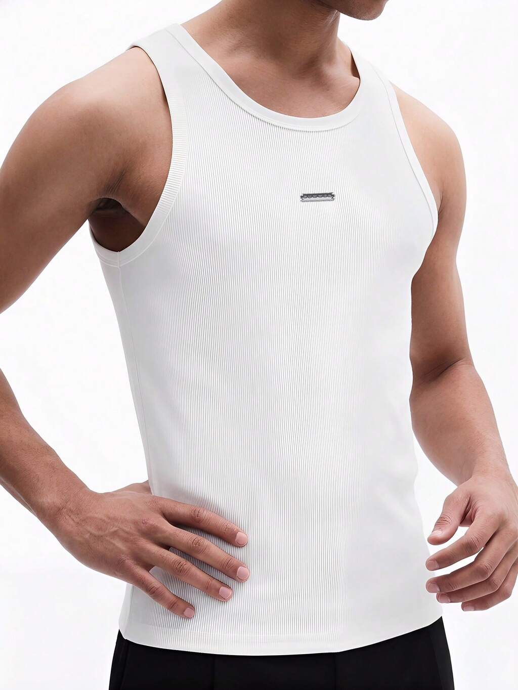 SUMWON Débardeur classique blanc col rond pour hommes, maillot de corps côtelé sans manches, t-shirt de base décontracté pour l'été