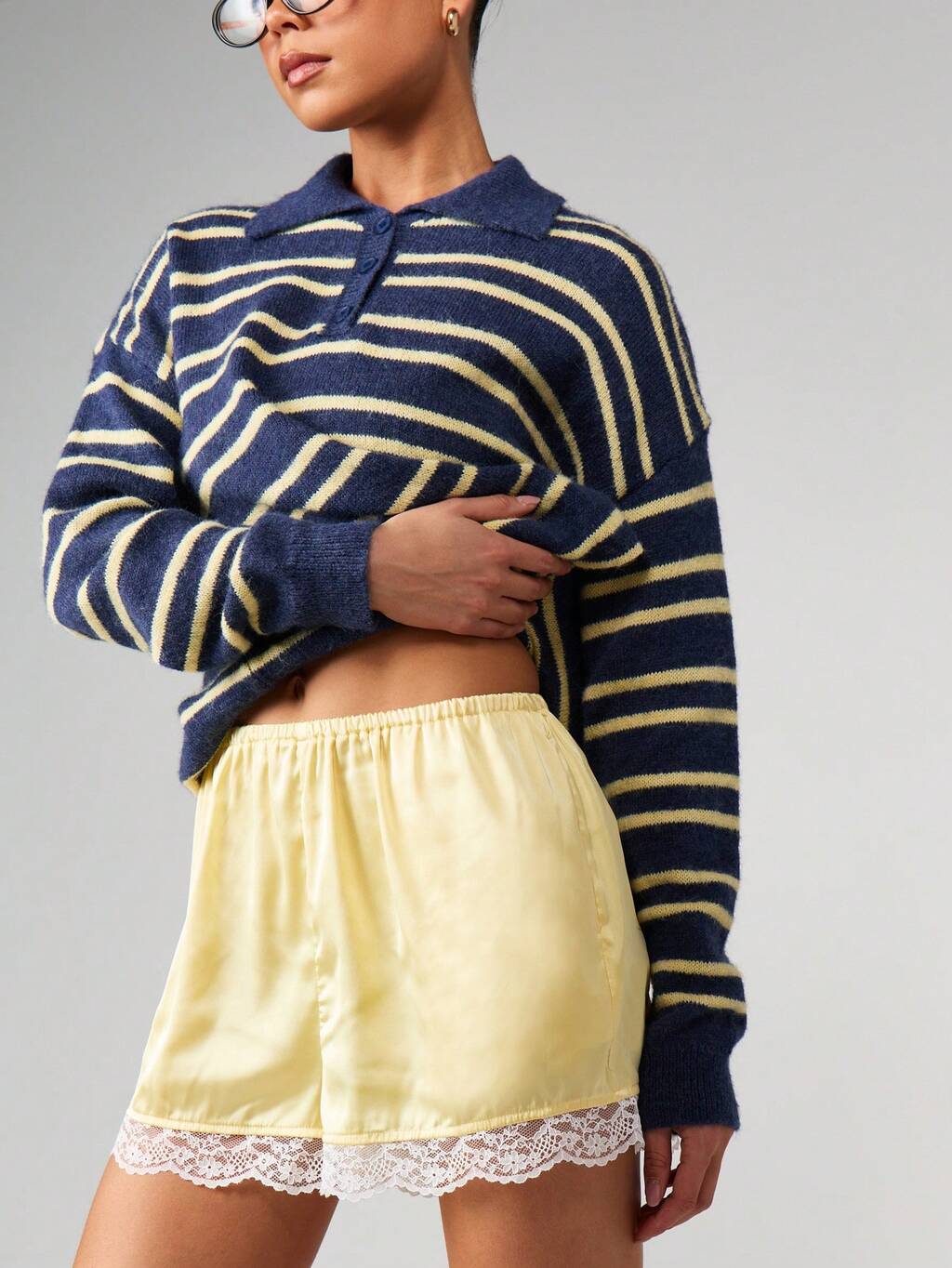 MISSGUIDED Short en satin avec bordure en dentelle pour femmes, taille haute avec bande élastique et cordon de serrage. Bas de pyjama d'été pour la détente