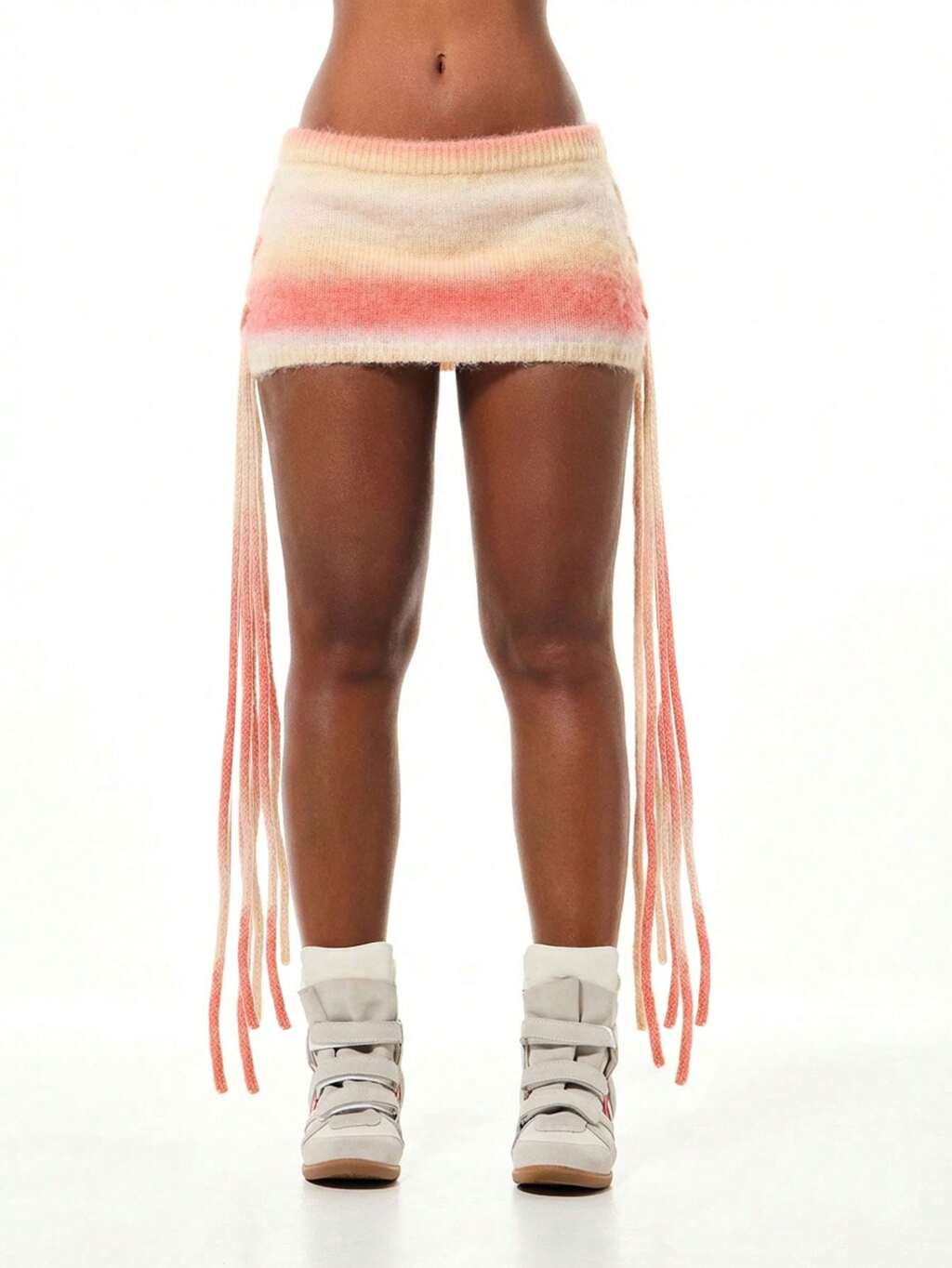 SUMWON Minigonna a maglia a righe con lacci laterali, texture morbida e soffice, gonna casual invernale confortevole per donna