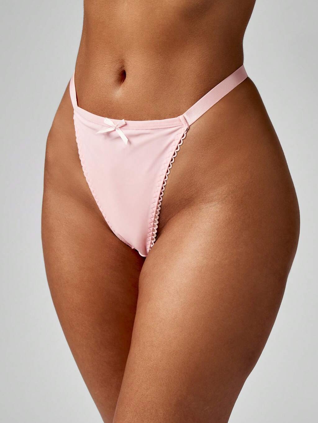 MISSGUIDED 섹시한 핑크 레이스 끈 팬티, 스캘럽 트림 및 보우 디테일, 친밀한 란제리 컬렉션용