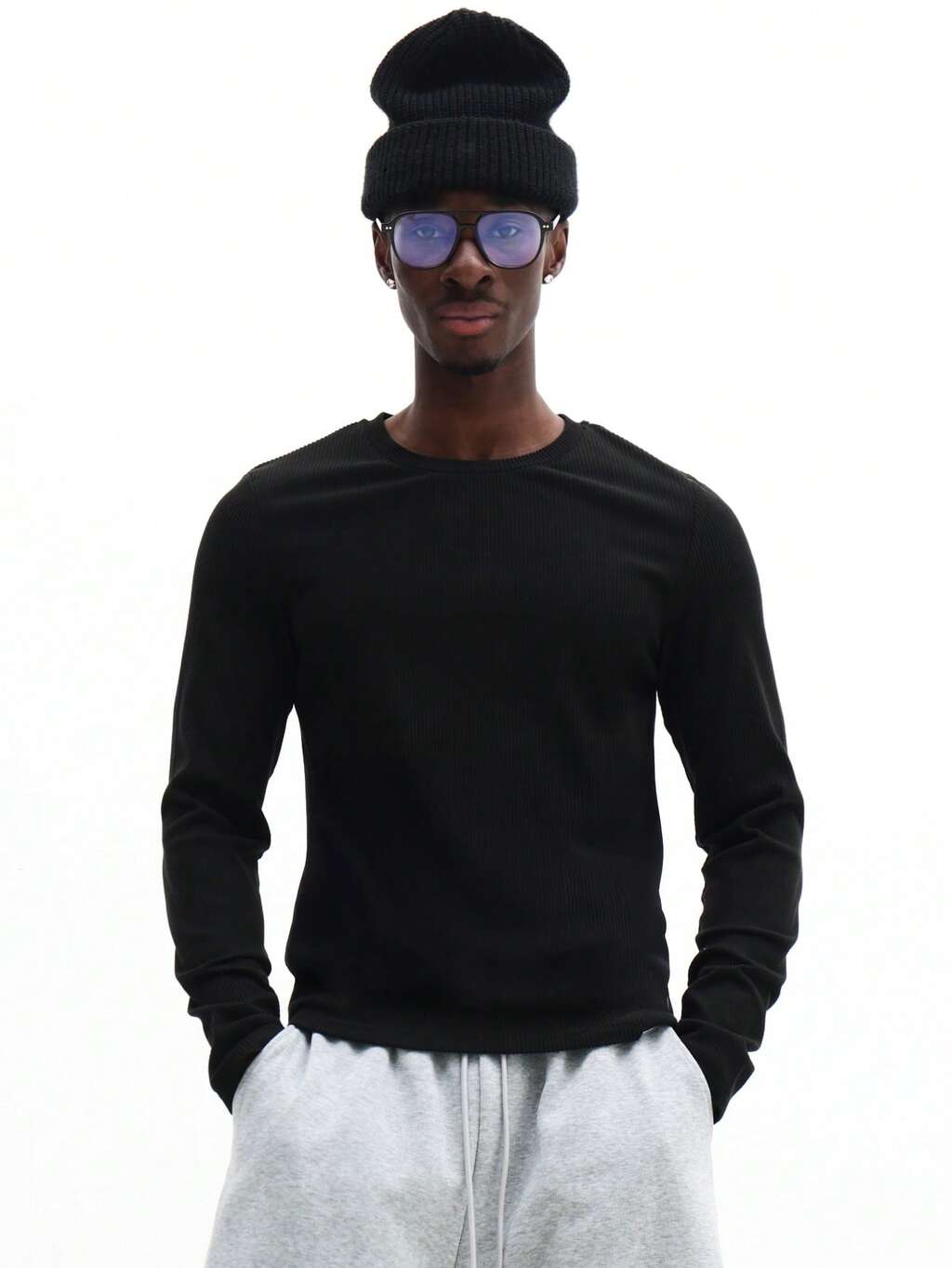 SUMWON 숨원 슬림핏 긴팔 크루넥 티셔츠 캐주얼 솔리드 골지 니트 탑 겨울 가을 일상복 플레인