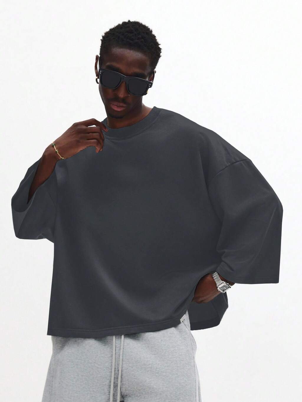 SUMWON 남성용 오버사이즈 크롭 핏 반팔 티셔츠, 부드러운 저지 원단으로 캐주얼한 봄 여름 착용
