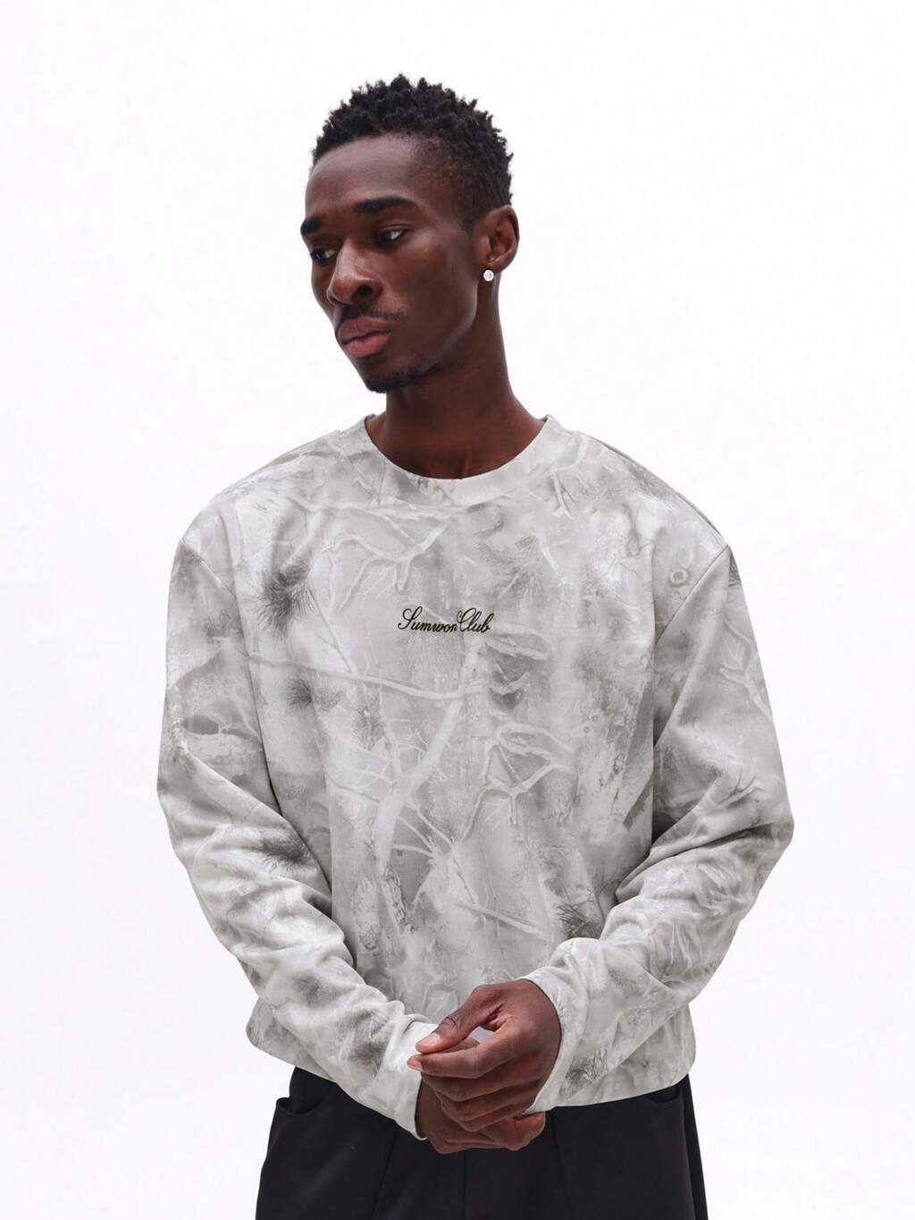 SUMWON 숨원 오버사이즈 긴팔 스웨트셔츠 풀오버 크루넥 캐주얼 릴렉스 핏 겨울 편안한 라운지웨어 플레인
