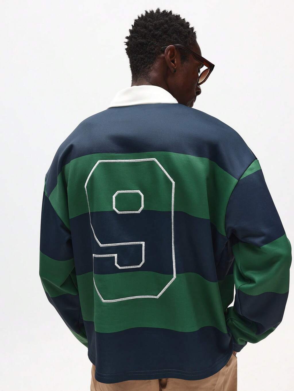 PLAYBOY X SUMWON Camisa Polo de Manga Longa com Gola, Listras Horizontais e Logotipo da Marca, Ajuste Regular, para Uso Casual no Dia a Dia no Outono e Inverno