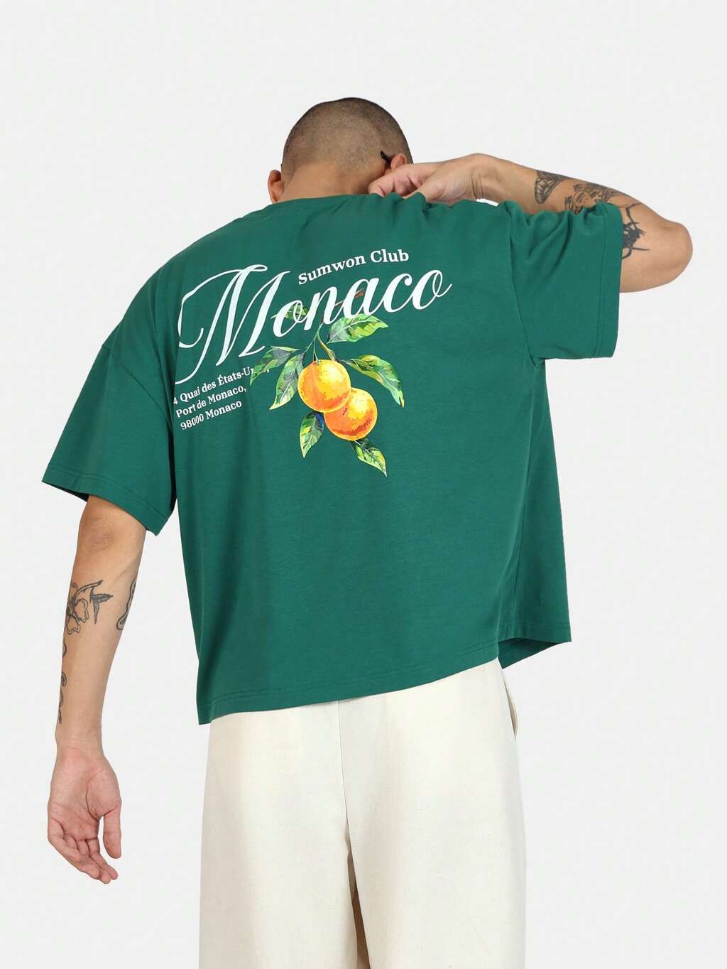 Camiseta com Estampa de Cítricos Sumwon Club Monaco, Streetwear de Estilo Urbano, Caimento Quadrado, Casual, Moda Primavera, Tema de Férias, Praia, Viagem