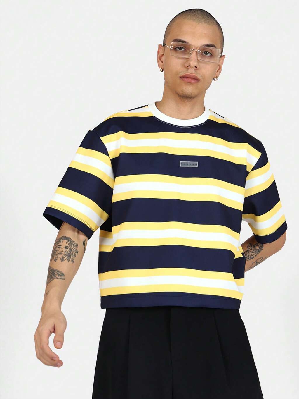 SUMWON Camiseta Listrada Premium, Casual de Verão, Gola Careca, Ajuste Atlético, Manga Curta, Streetwear Urbano, Essencial para o Fim de Semana, Moderna Declaração de Moda