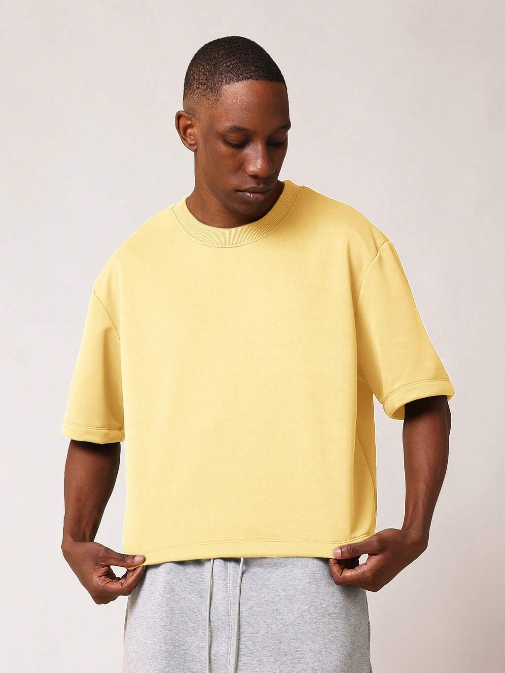 SUMWON Camiseta Essencial de Manga Curta e Ajuste Caixa em Tecido Pesado