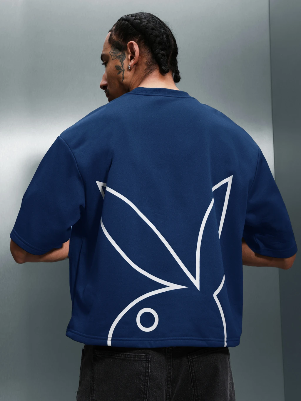 PLAYBOY X SUMWON Camiseta Casual de Manga Curta com Gola Careca e Estampa Gráfica da Capa da Revista do Coelho na Parte de Trás, Azul Royal Oversized para Homens