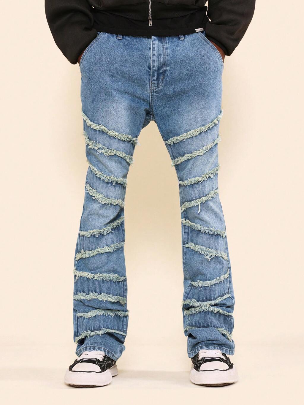 SUMWON Calça Denim Flare de Perna Larga Estilo Grunge, Ajuste Relaxado, Painelado, Denim Retrô Y2K, Streetwear Urbano, Desgastado, Barra Desfiada, Calça de Skatista Simples